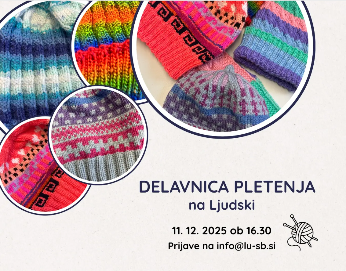 Ljudska univerza Slovenska Bistrica vas vabi na dveurno delavnico najbolj klasične zimske veščine naših babic – pletenja. Volno in pletilke potrebujete svoje, znanje & izkušnje prostovoljke Ivane pa dobite pri njih.