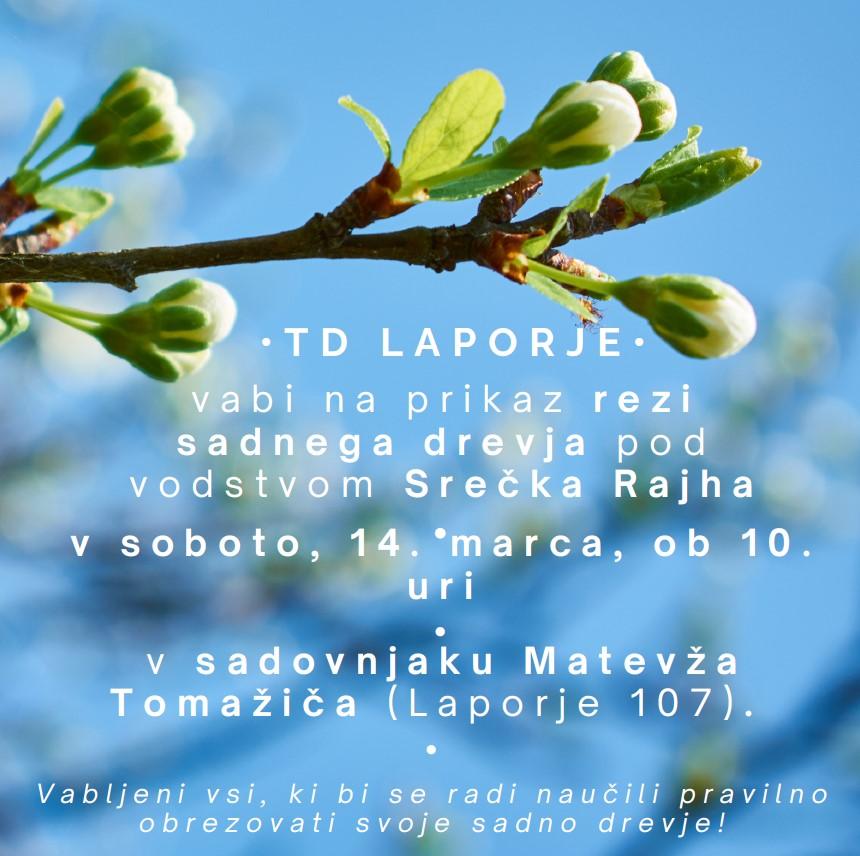 TD Laporje vabi na prikaz rezi sadnega drevja. Rez bo opravil in razložil Srečko Rajh.