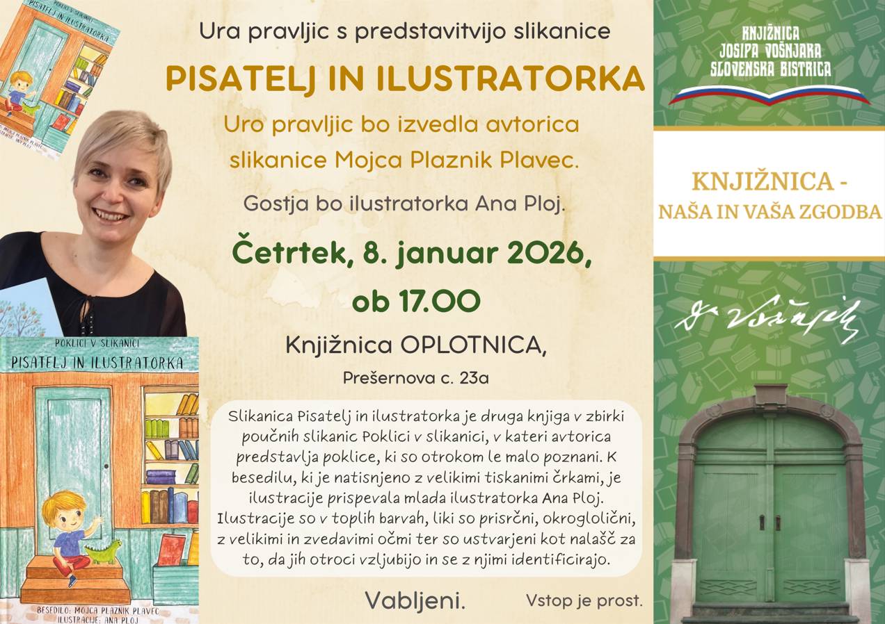 Uro pravljic bo izvedla avtorica slikanice Mojca Plaznik Plavec. Gostja bo ilustratorka Ana Ploj.